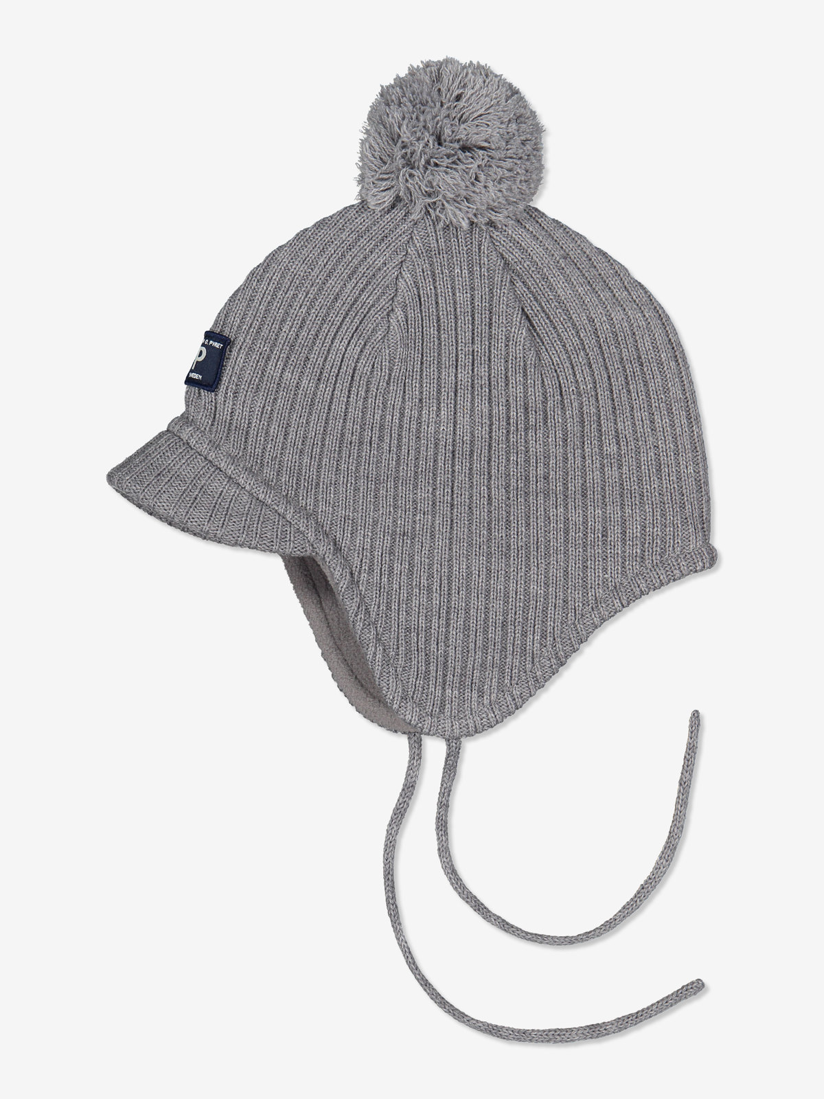 Ribbestrikket lue i varm ull med mykt fleecefôr i resirkulert polyester. Luen har en skjerm foran som gir behagelig beskyttelse mot vær og vind. De minste størrelsene har knytebånd under haken som holder luen på plass.
