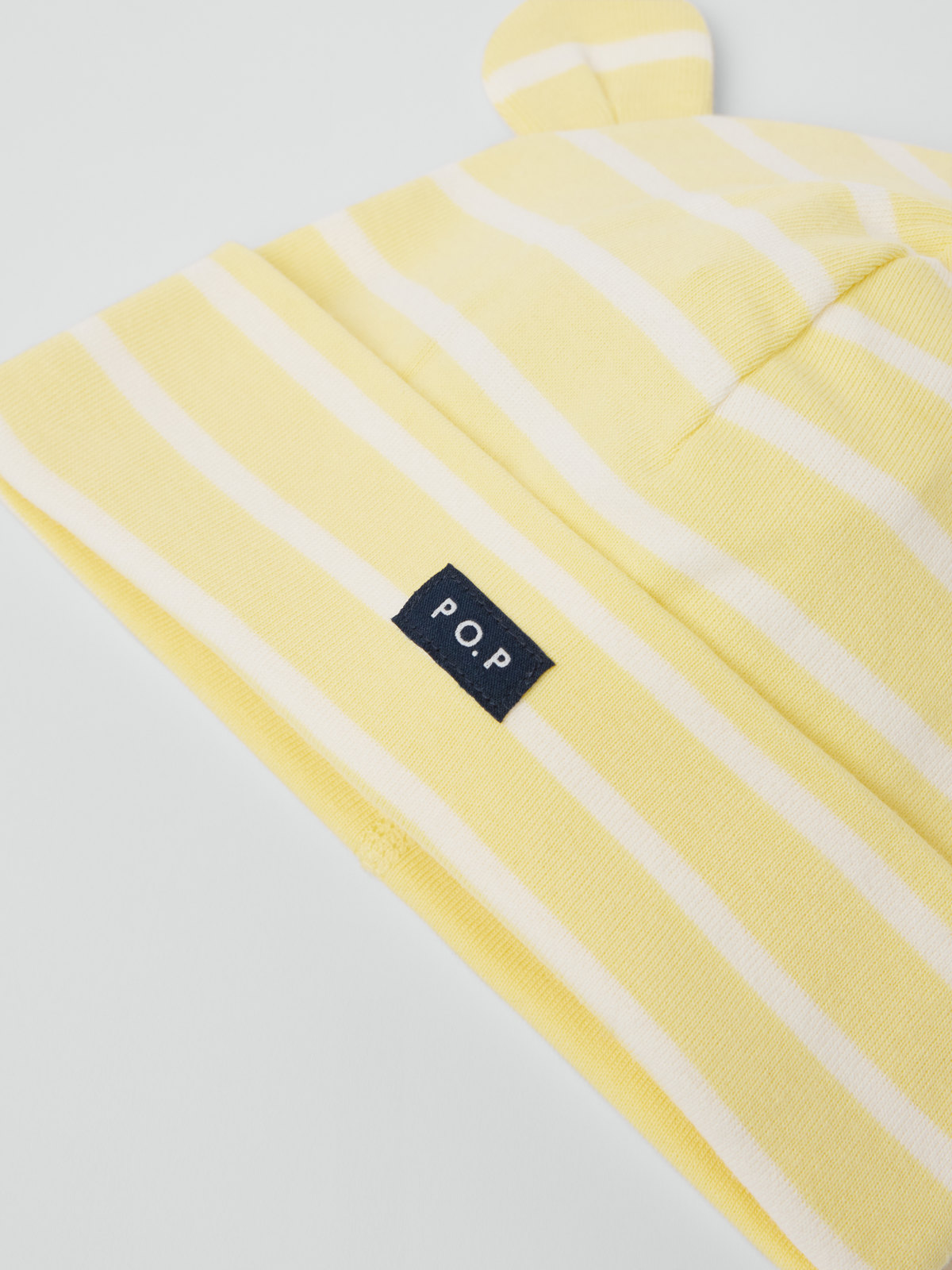 Vår klassiske stripete lue i 100 % økologisk bomullstrikå til baby. Luen har påsydde ører og oppbrett som kan justeres etter størrelsen på barnets hode.