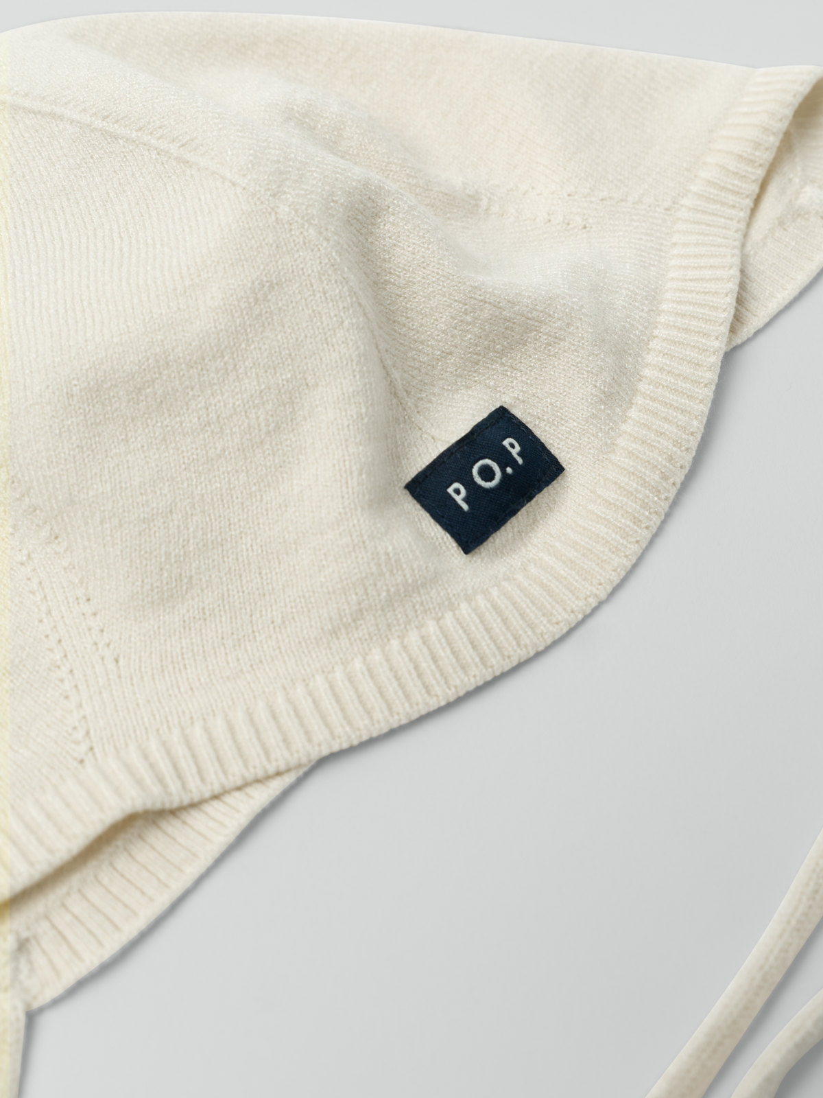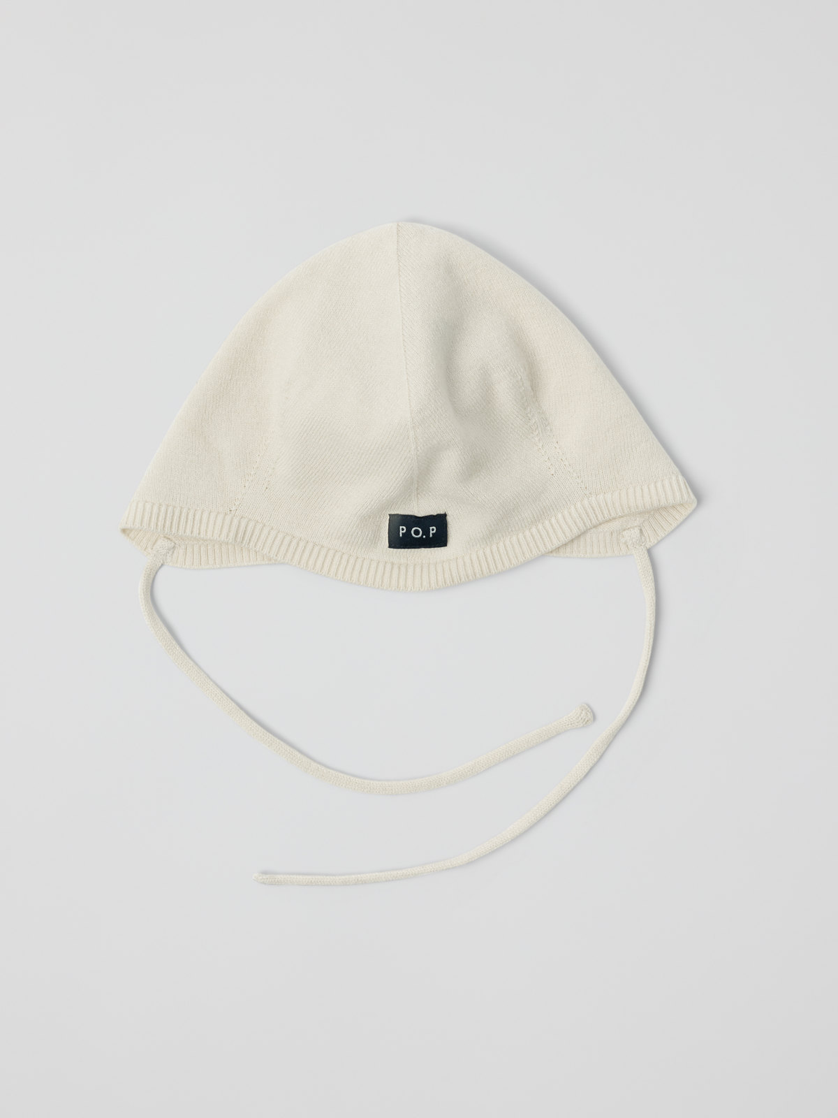 Strikket hjelmlue i myk og god blanding av Ecovero™ viskose og resirkulert polyester – perfekt for å holde de aller minste varme. Lua dekker ørene og sitter godt på med myk knyting under haken.