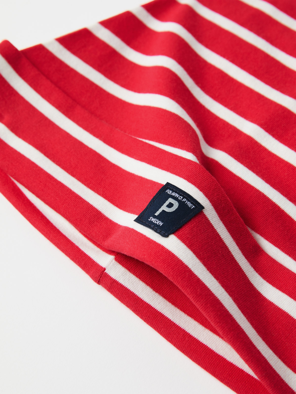 Stripet lue i økologisk bomull med oppbrett. Den lange modellen gjør luen perfekt som nisselue. Størrelsene tilsvarer hodeomkrets i centimeter. S 42-46 M 48-52 L 54-58
