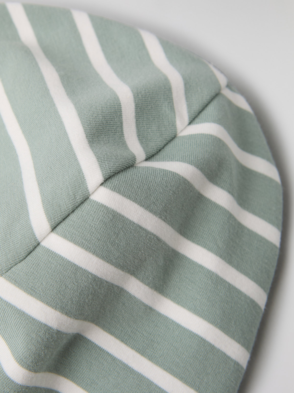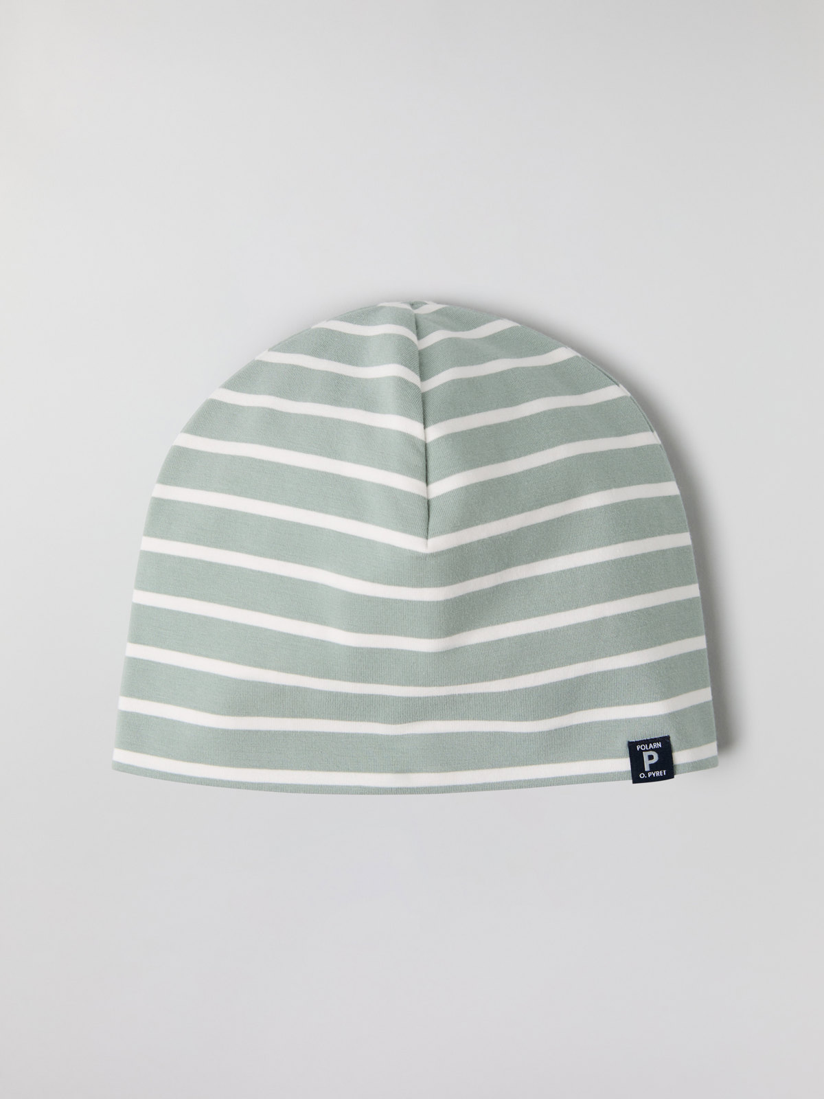 Tynn, klassisk stripet lue i myk økologisk bomullstrikot. Perfekt til alle utendørsaktiviteter vår og høst samt under hjelmen!