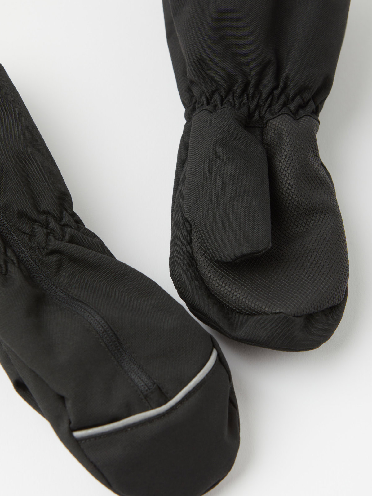 Vindtette votter i vanntett materiale med lang, praktisk glidelås som gjør dem enkle å ta på og av.