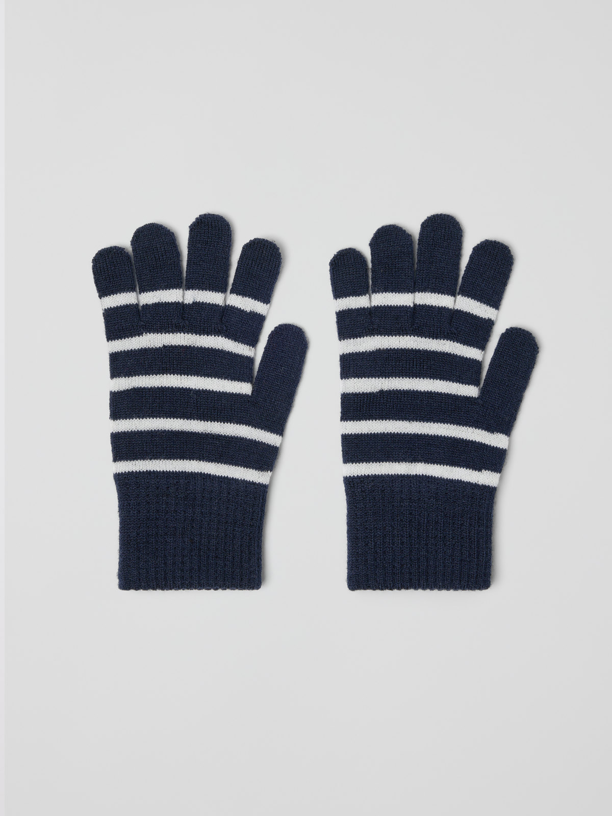 Strikkede fingervanter i ullblanding. Vantene har våre klassiske striper og tøyer seg etter størrelsen på hånden.