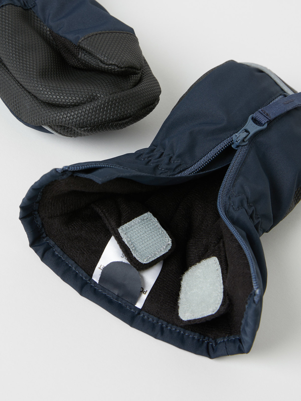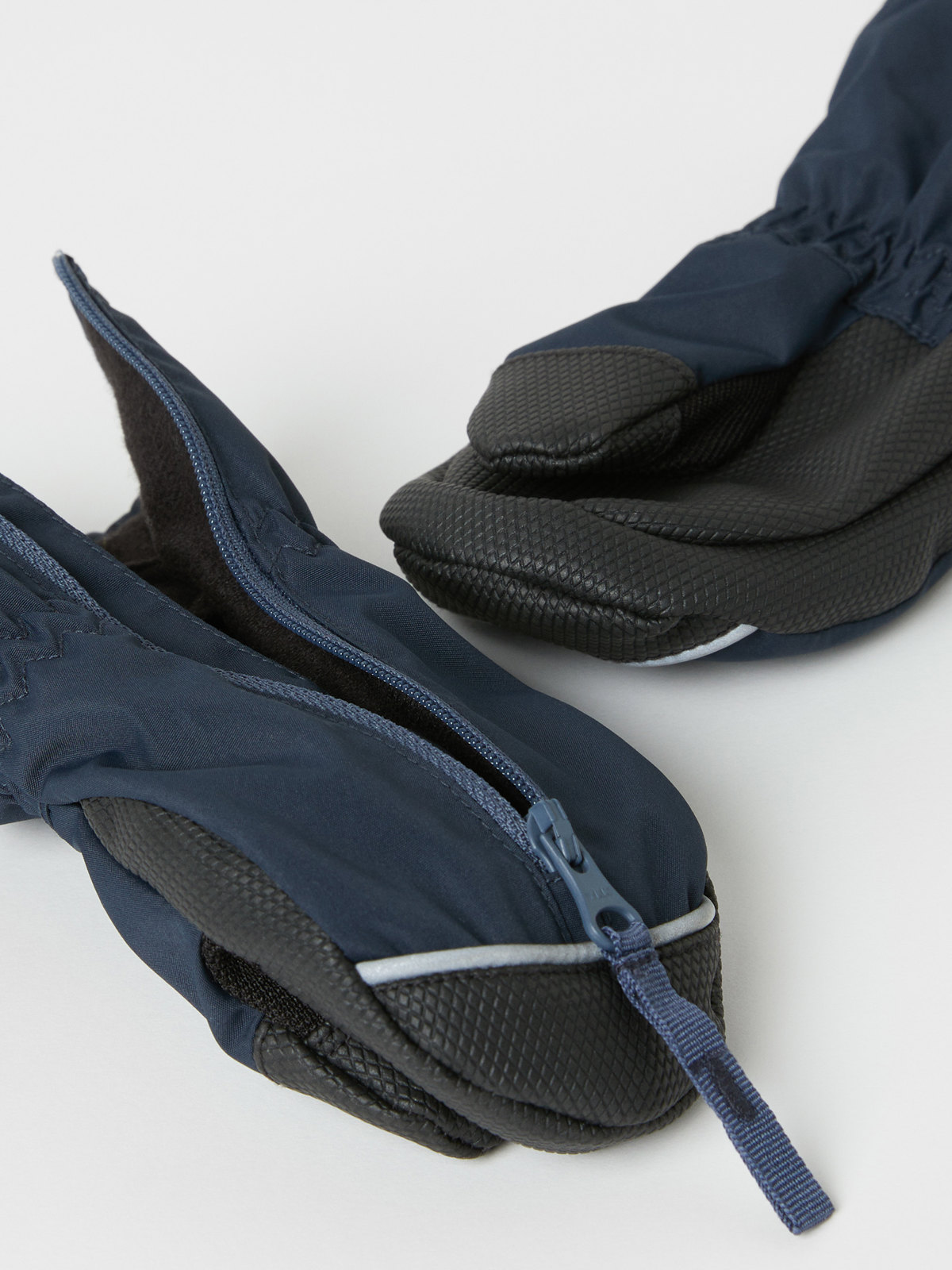 Vindtette votter i vanntett materiale. Vottene har et behagelig fleecefôr og en lang glidelås på oversiden som gjør dem enklere å ta på og av. De har reflekser foran og gripevennlig materiale i håndflaten.