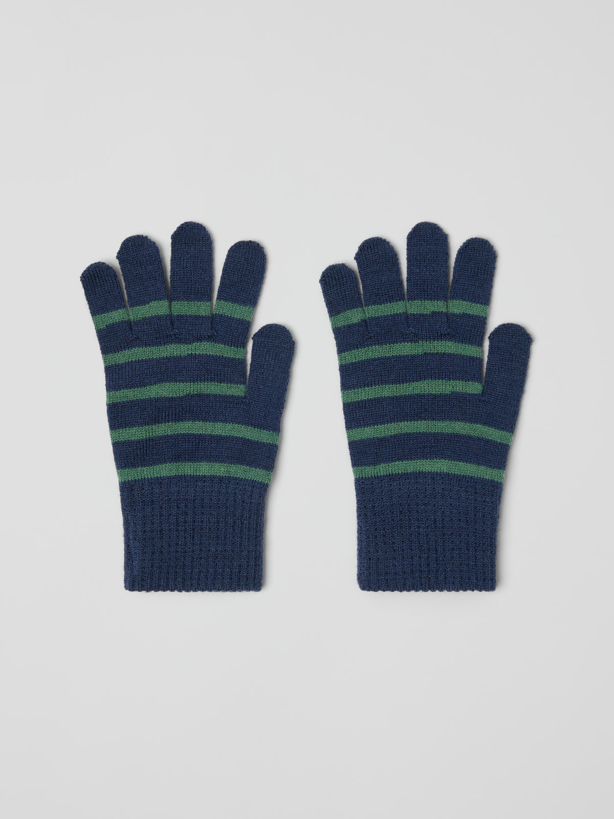 Strikkede fingervanter i ullblanding. Vantene har våre klassiske striper og tøyer seg etter størrelsen på hånden.