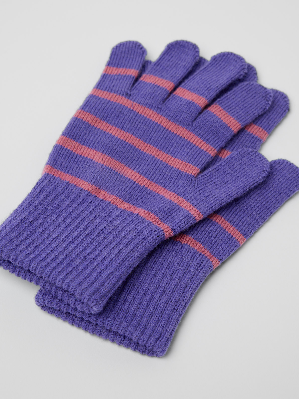 Strikkede fingervanter i ullblanding. Vantene har våre klassiske striper og tøyer seg etter størrelsen på hånden.