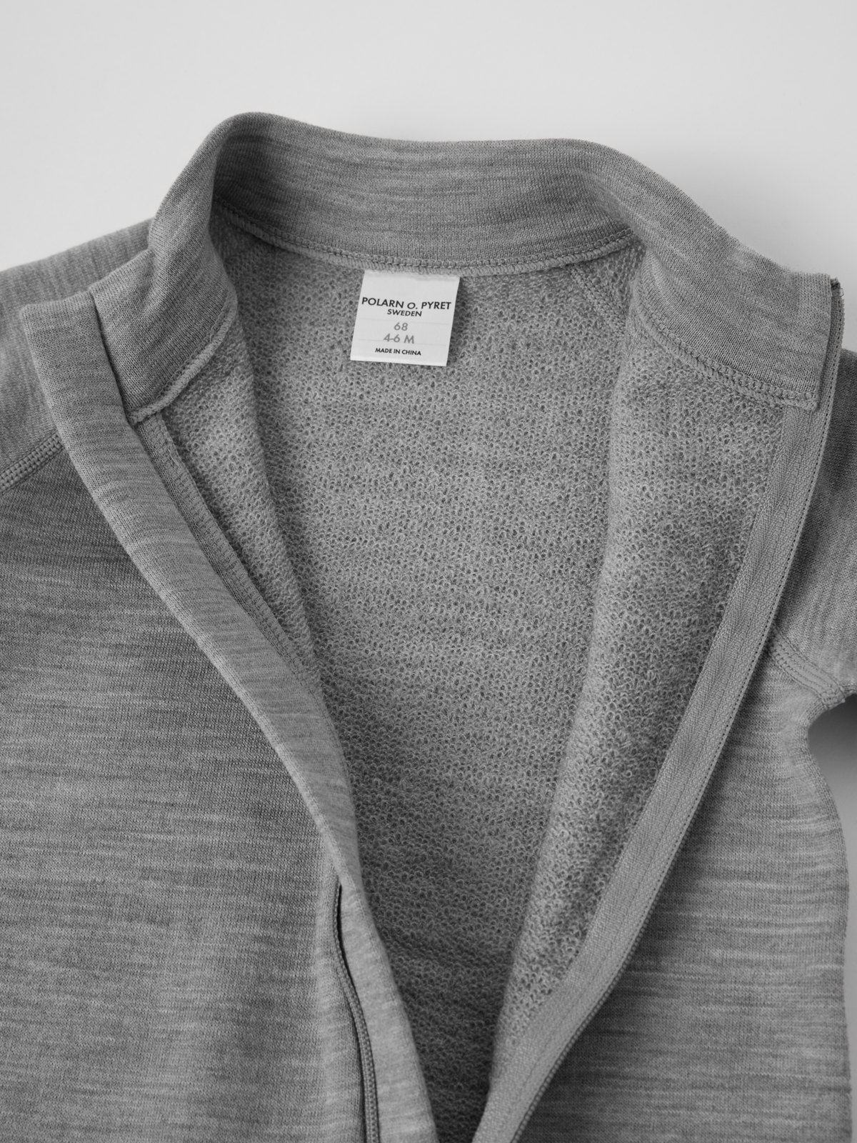 Varm dress i myk og deilig merinoull-frotté som absorberer fuktighet effektivt og holder barnet varmt og tørt. Frotteen holder luften inntil kroppen som et varmende lag, og ullen holder på varmen og er samtidig pustende. Dressen har en åpning foran med forlenget glidelås for enkel av- og påkledning.