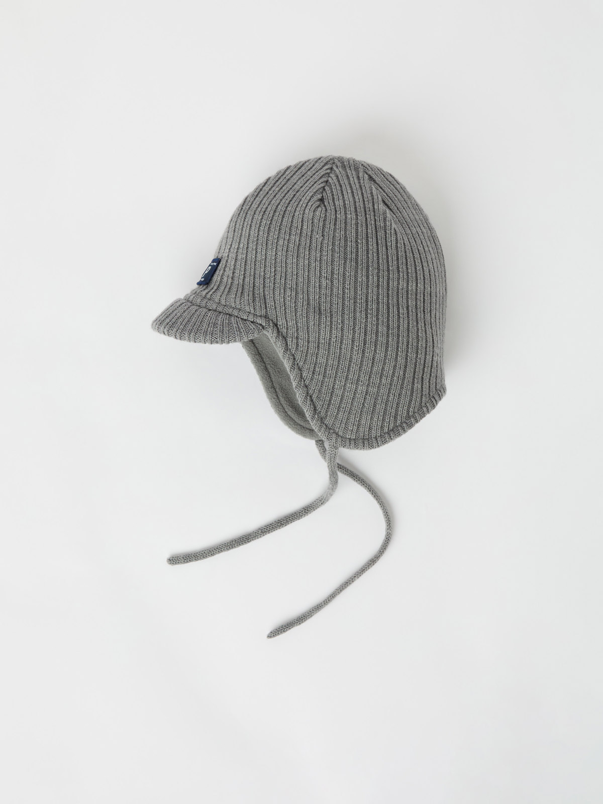 Ribbestrikket lue i varm ull med mykt fleecefôr i resirkulert polyester. Luen har en skjerm foran som gir behagelig beskyttelse mot vær og vind. De minste størrelsene har knytebånd under haken som holder luen på plass.
