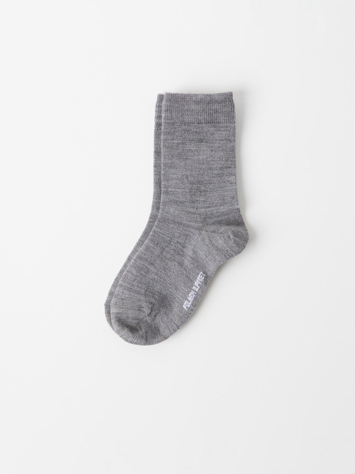 Ensfargede sokker i varmende merinoull. Størrelsen er angitt på innsiden av skaftet. Der er det også plass til å skrive barnets navn. Lett å holde orden!