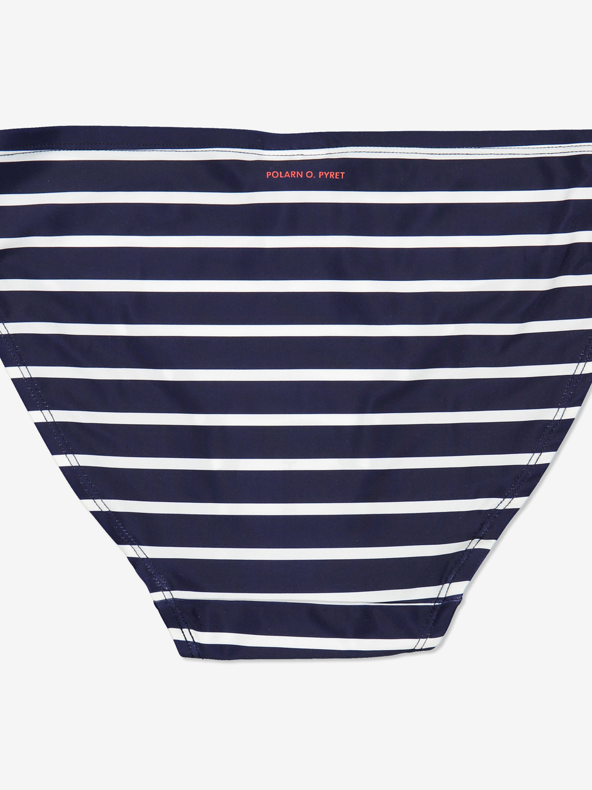 Stripet bikinibukse i voksenstørrelser. Buksen er i resirkulert stoff.
