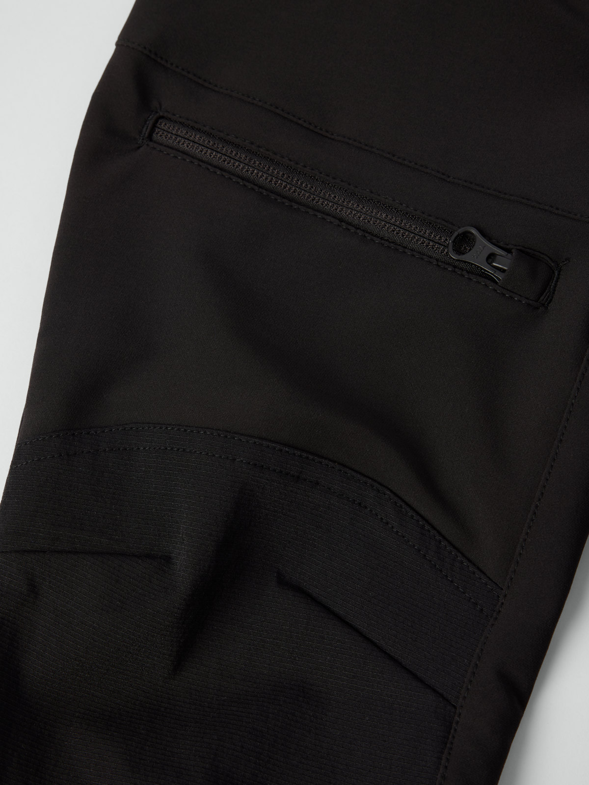 Buksen har to frontlommer og en lårlomme med glidelås.