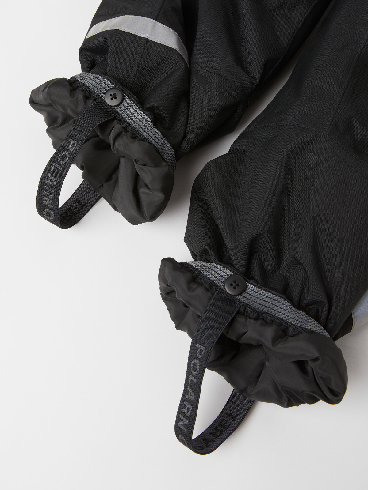 • Elastiske, utskiftbare fotstrikker holder buksebena på plass