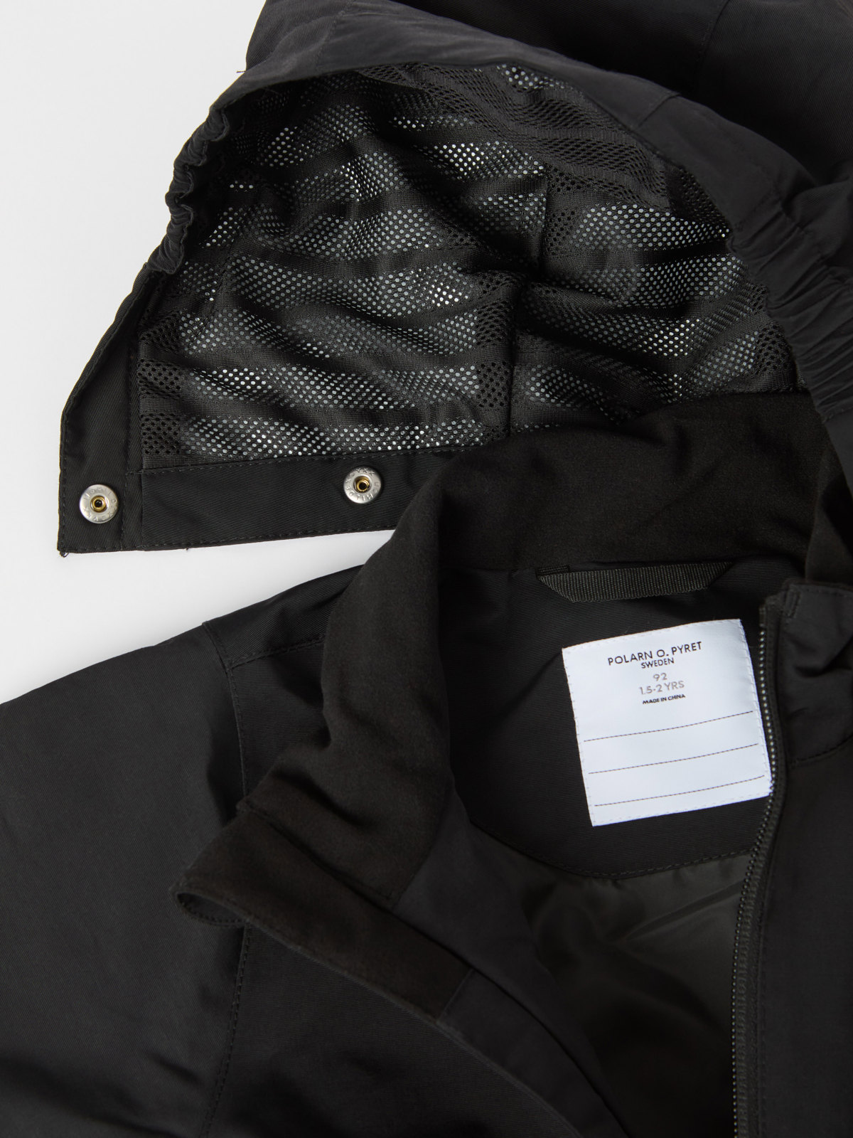 • Den regulerbare hetten er avtakbar og kan festes med trykknapper for økt sikkerhet, og har dessuten strikk i sidene for best mulig passform