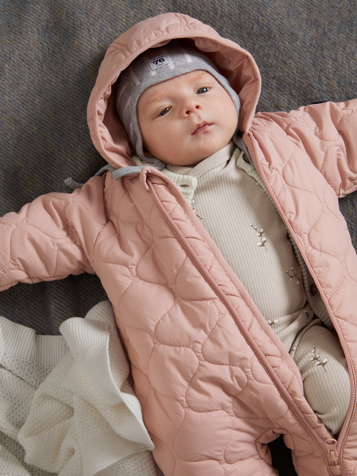 Utrolig myk og god dress i vindtett og vannavvisende materiale – deilig både i vognen og på fanget. Dressen er varmt vattert og har en fast hette som beskytter godt mot vind og kulde.