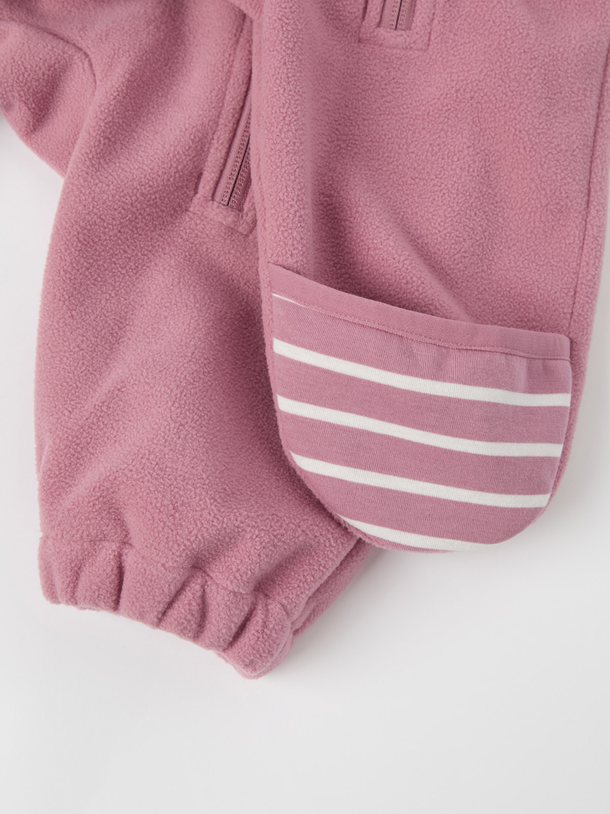 • Størrelse 80 har strikk nederst på ermene og bena