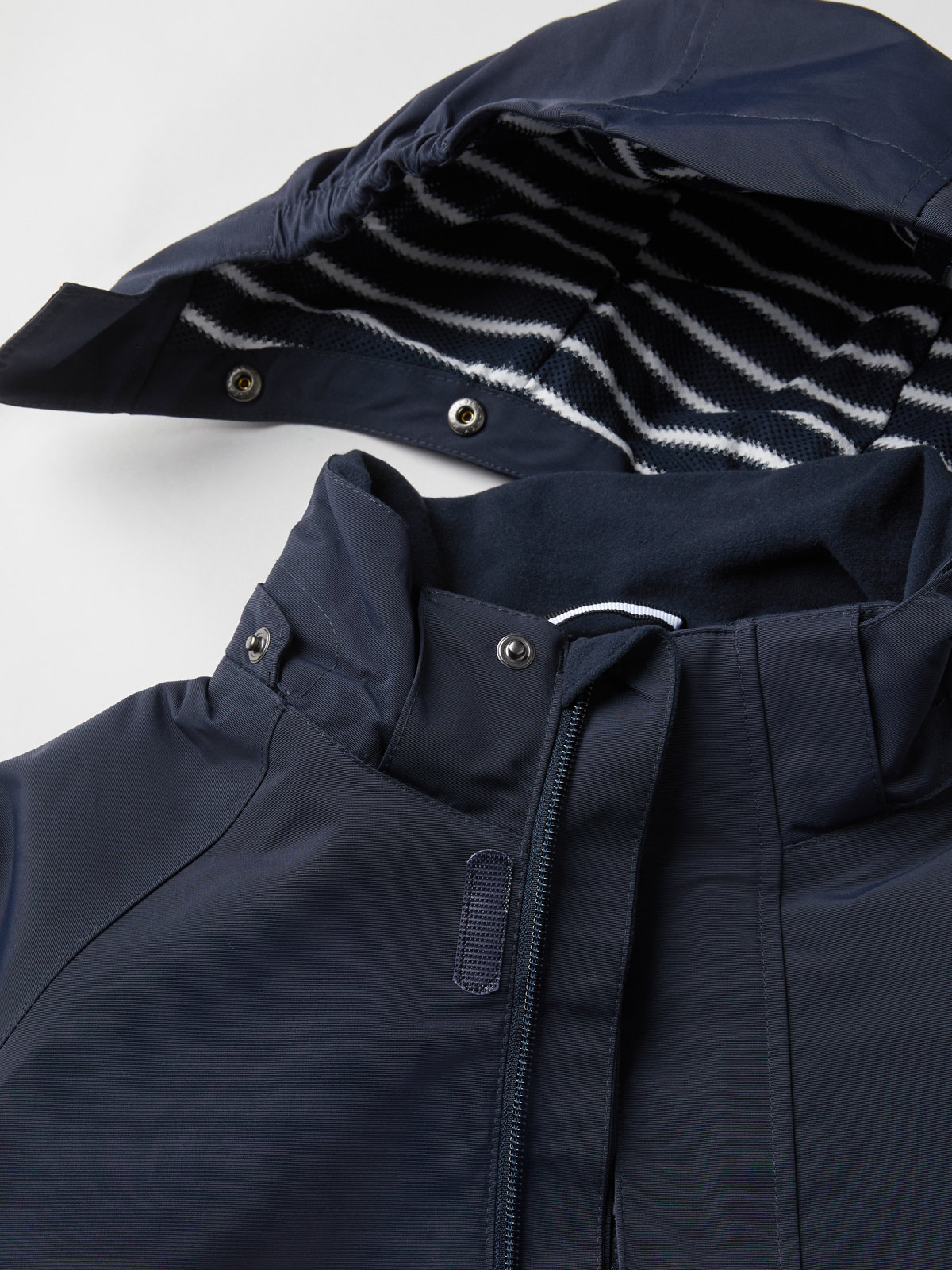 • Den regulerbare hetten er avtakbar og kan festes med trykknapper for økt sikkerhet, og har dessuten strikk i sidene for best mulig passform.