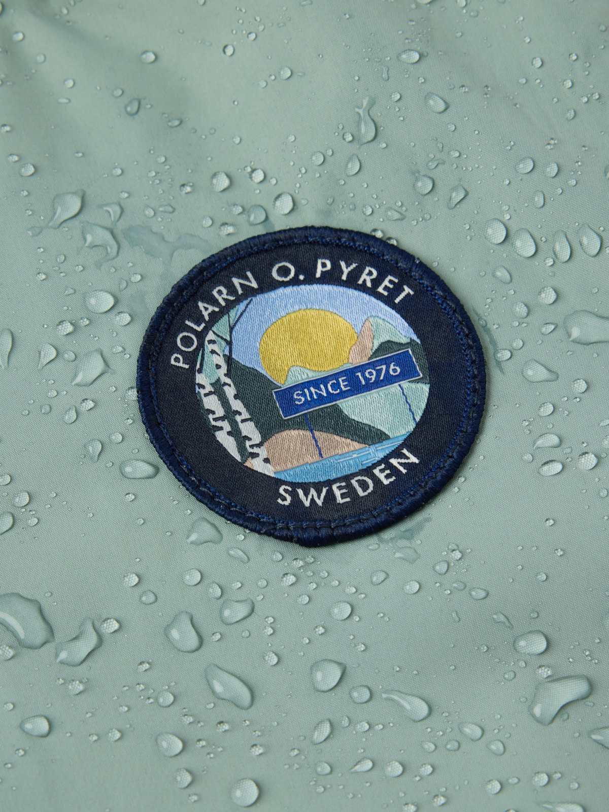 Vind- og vanntett jakke i lett, smidig resirkulert polyester – perfekt å ha i sekken for raske værskifter! Det pustende materialet slipper ut overflødig varme og fuktighet, så barnet holder seg komfortabelt på tur.