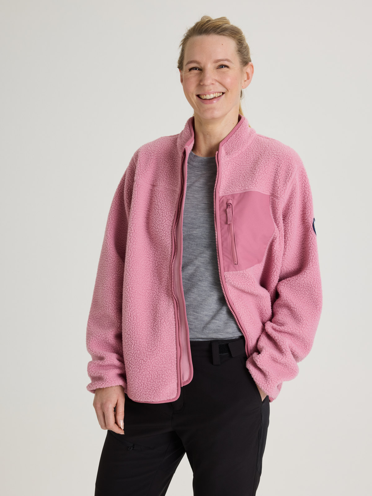 Pilefleecejakke i mykt og behagelig materiale av resirkulert polyester – til voksen. Et utrolig behagelig favorittplagg som holder deg varm på herlige vår- og høsteventyr!