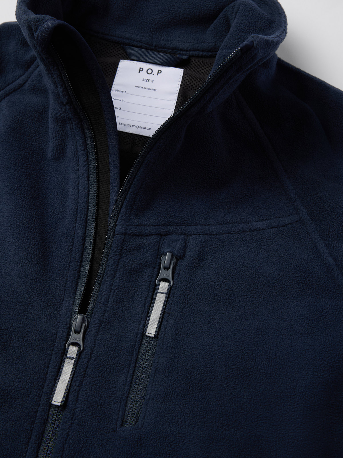 • Vindklaffen på innsiden av glidelåsen gir ekstra beskyttelse mot kald luft og fuktighet. Glidelåsen har en beskyttelse øverst for å hindre at den gnager mot hake og kinn.