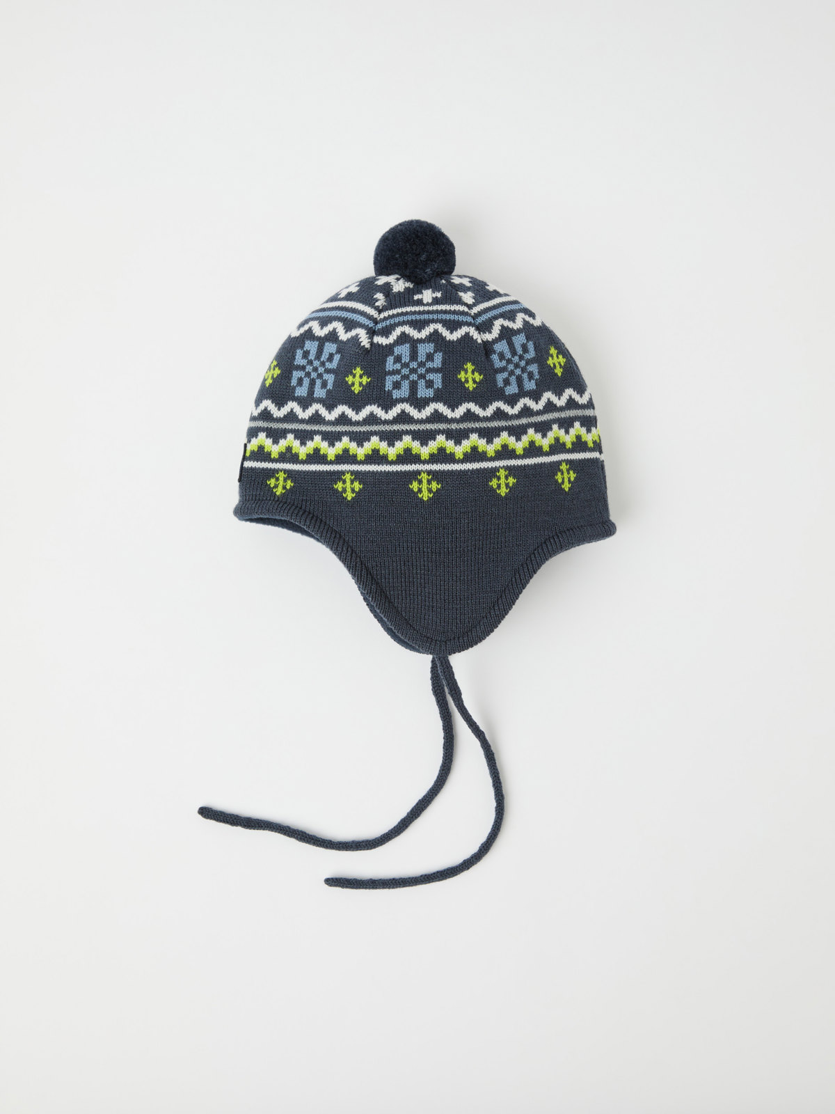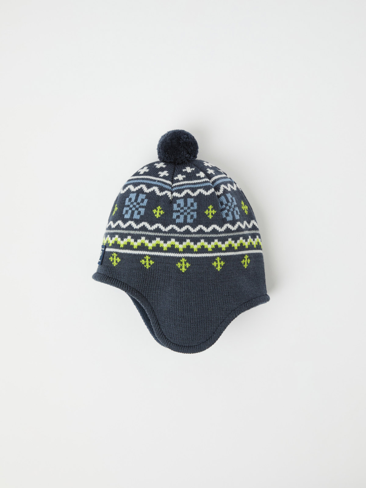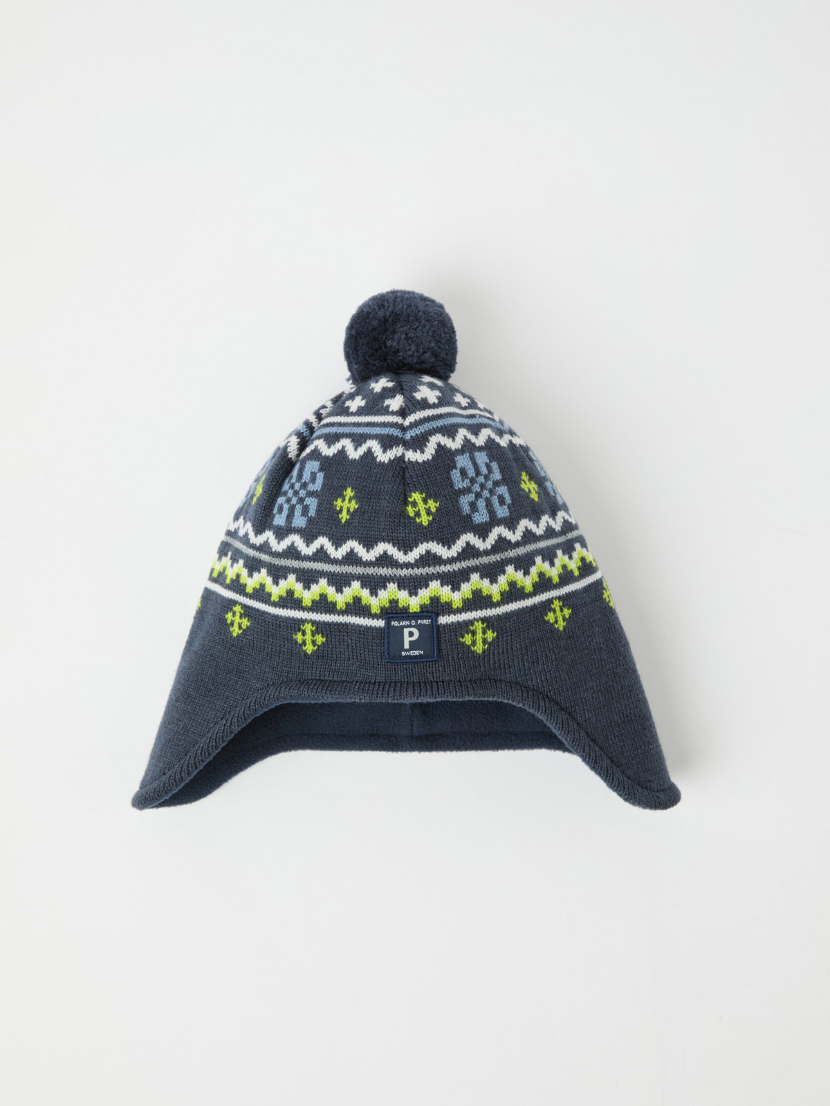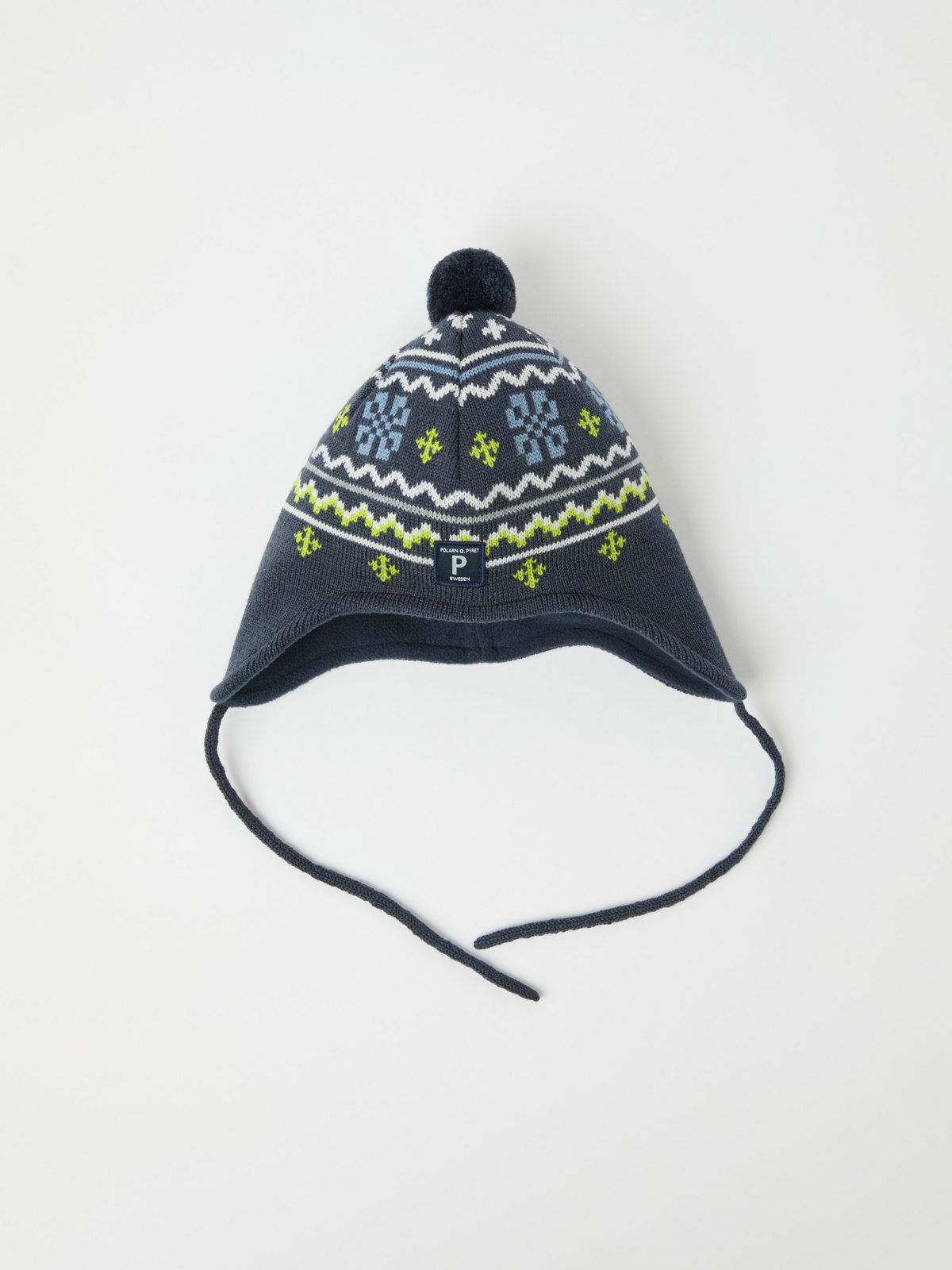 Vindtett, jacquardmønstret hjelmlue i varmende ullblanding, med fin dusk. Luen er fôret med myk fleece.
