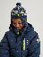 Knytebåndet under haken holder luen på plass. Størrelse 52/54 har ikke knytebånd.