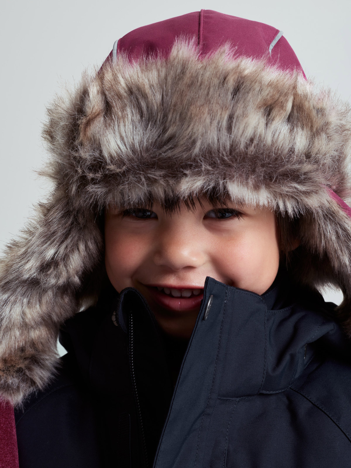 Vindtett trapper-lue ARCTIC med mykt, varmende fleecefôr i resirkulert polyester – en solid lue som beskytter. ARCTIC er vår varmeste klesserie, designet for virkelig kalde vinterforhold. Luens materiale har god pusteevne og lukkes under haken med borrelås. Øreflappene kan festes opp eller ned med knapper.