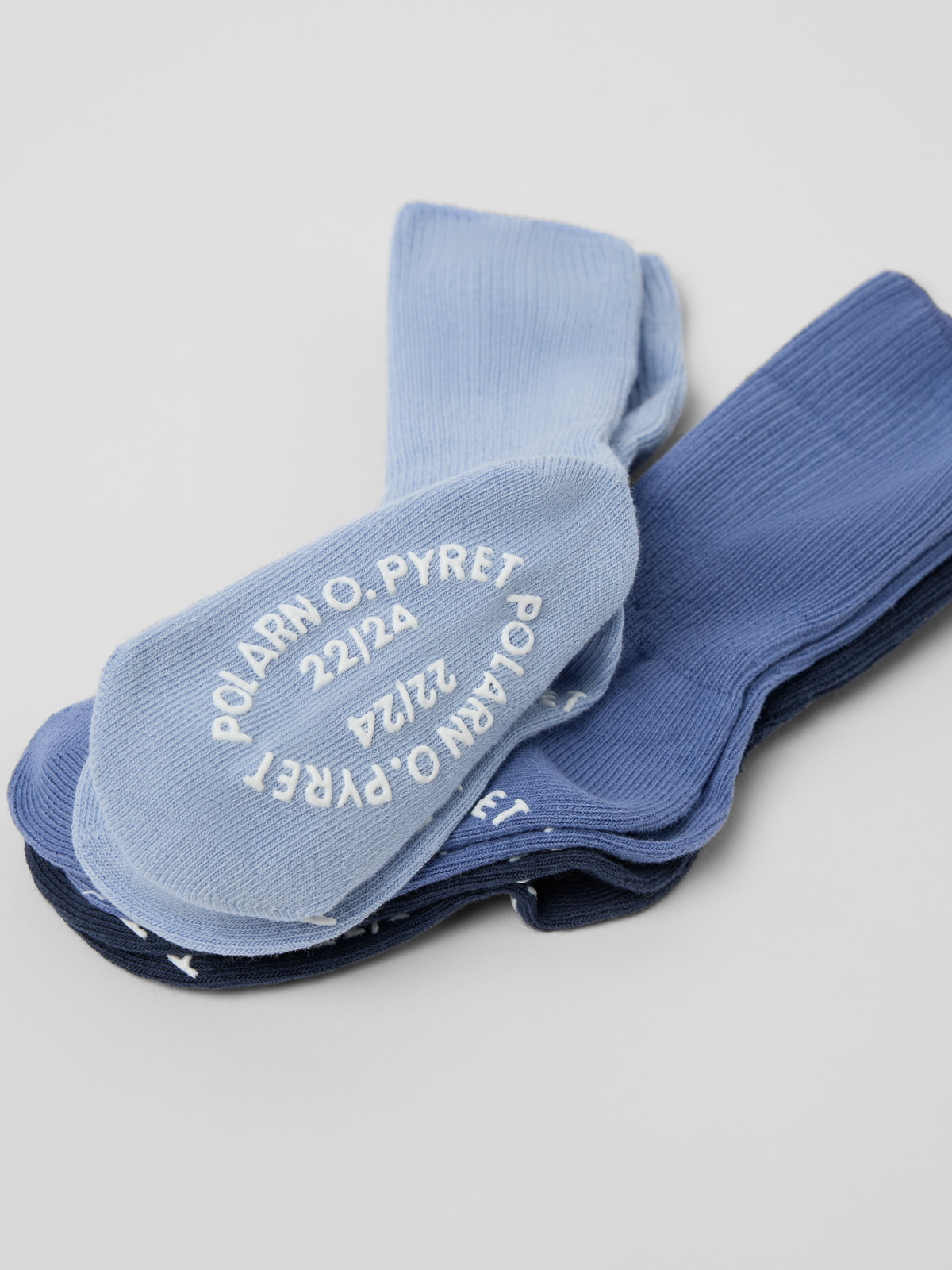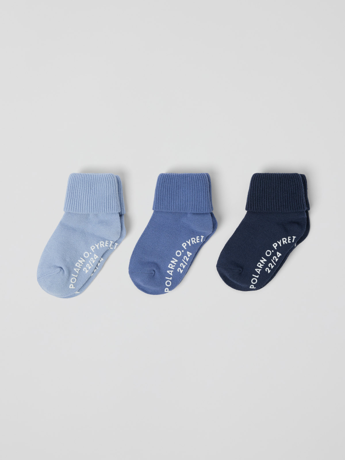 Fyll på sokkeskuffen med en 3-pakning sokker med sklisikring. Sokkene er fremstilt i myk økologisk bomull og har en vrangbord som kan brettes opp eller ned.