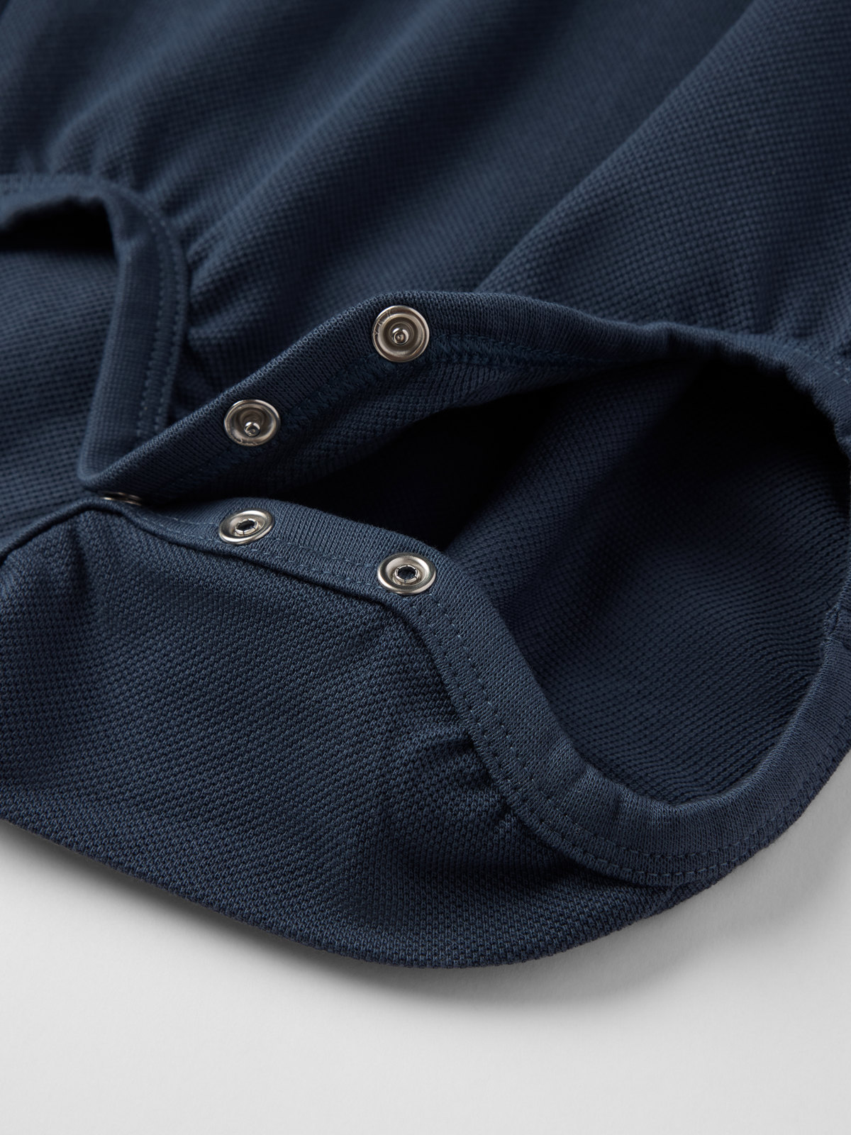 OBS! Dette produktet har en produksjonsfeil. Piquébody i 100 % økologisk bomull til baby – myk og fin til både hverdag og fest! Bodyen har myk krage og knappestolpe foran. Trykknapper i skrittet gjør klesskift enklere.