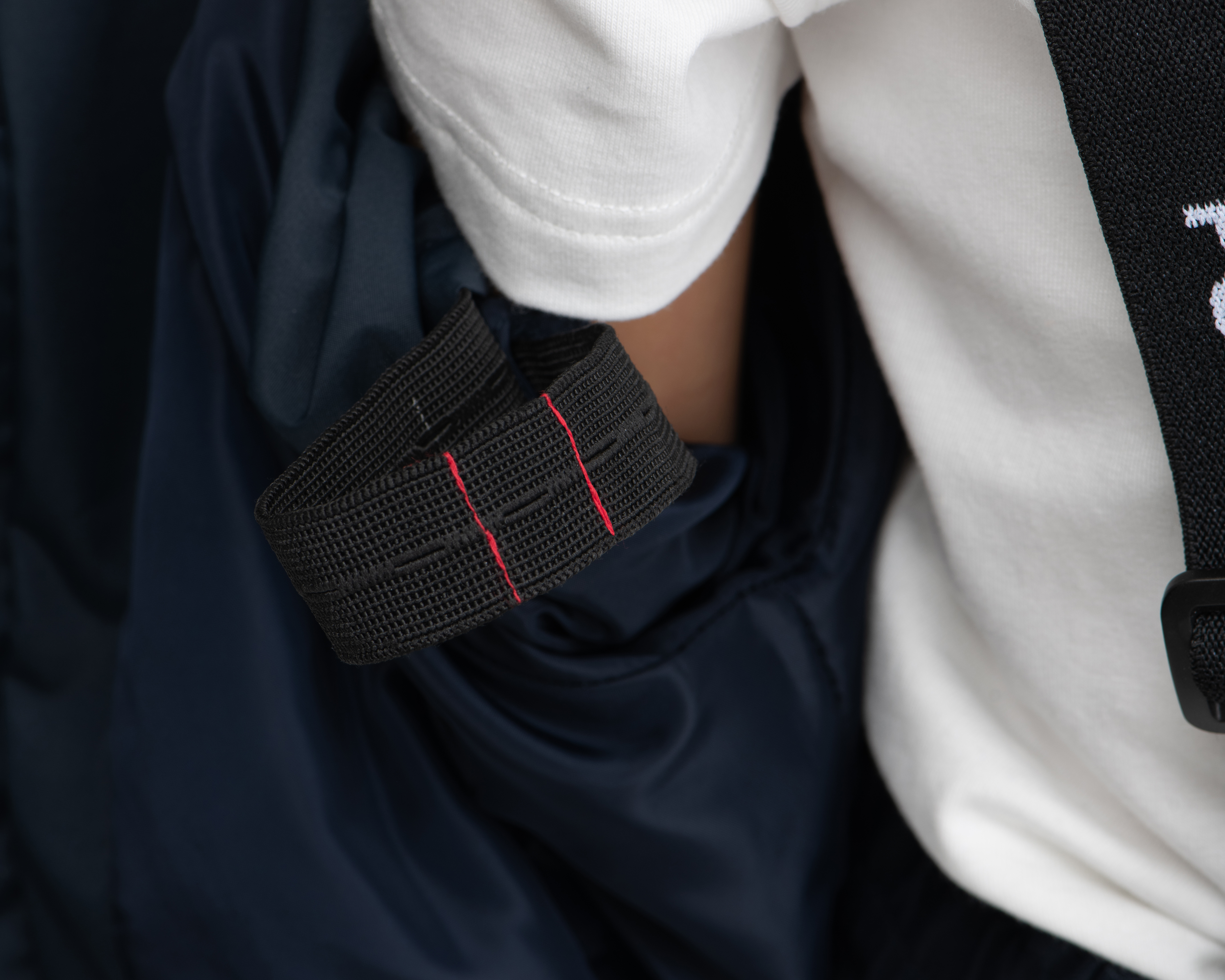 - Justeringene er skjult i en liten lomme på innsiden av ermer og ben for å unngå at barnet setter seg fast når plagget tas av og på.