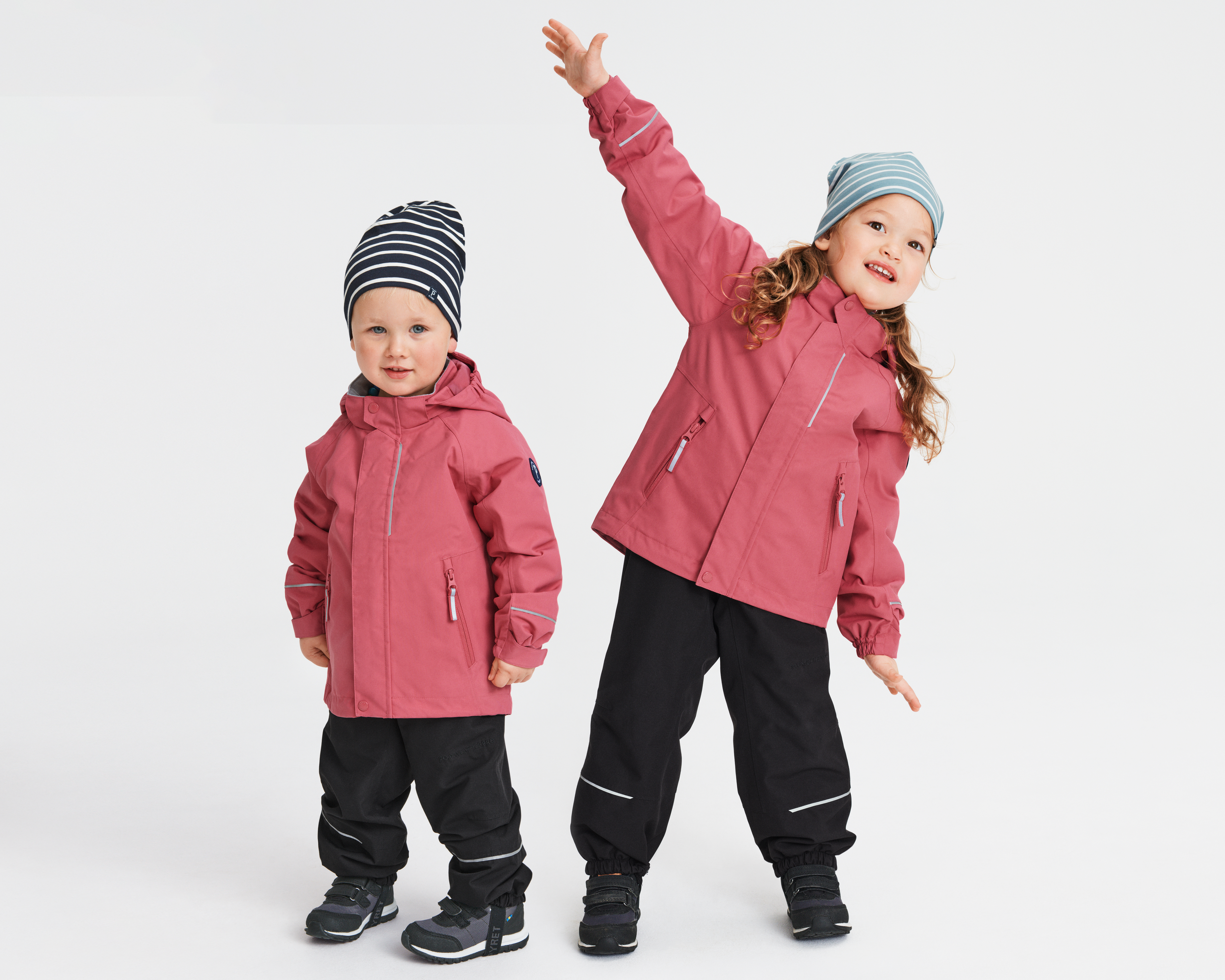 – Ytterklær som vokser med barnet har eksistert lenge på markedet. Men løsningene har ikke hatt den beste passformen eller de har vært vanskelige å justere tilbake til neste barn – noe som er et "must" for oss, ettersom vi vil at plaggene skal kunne arves og brukes av tre barn. Kravet til vår løsning ble derfor at plaggene måtte kunne justeres tilbake til opprinnelig størrelse slik at de kunne brukes på nytt av neste barn. Med utgangspunkt i disse forutsetningene begynte jeg å lage skisser. Resultatet ble PO.P Flexisize.